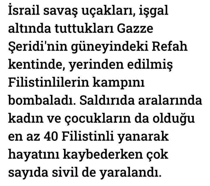 Dünya GEMHABER 27 Mayıs 2024 İsrail mahsun ve mazlum sivil Filistin halkını katletmeye dünyanın gözü önünde devam ediyor… https://gemhaber.com/wp-content/uploads/VID-20240527-WA0000.mp427’05’2024″‘ Bu haberi paylaşın:
